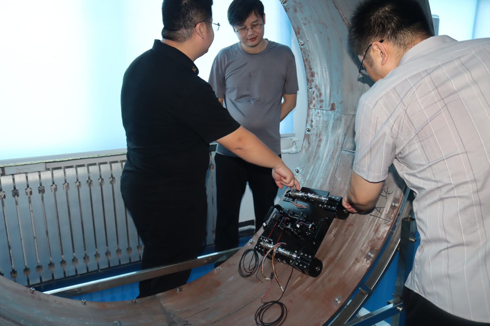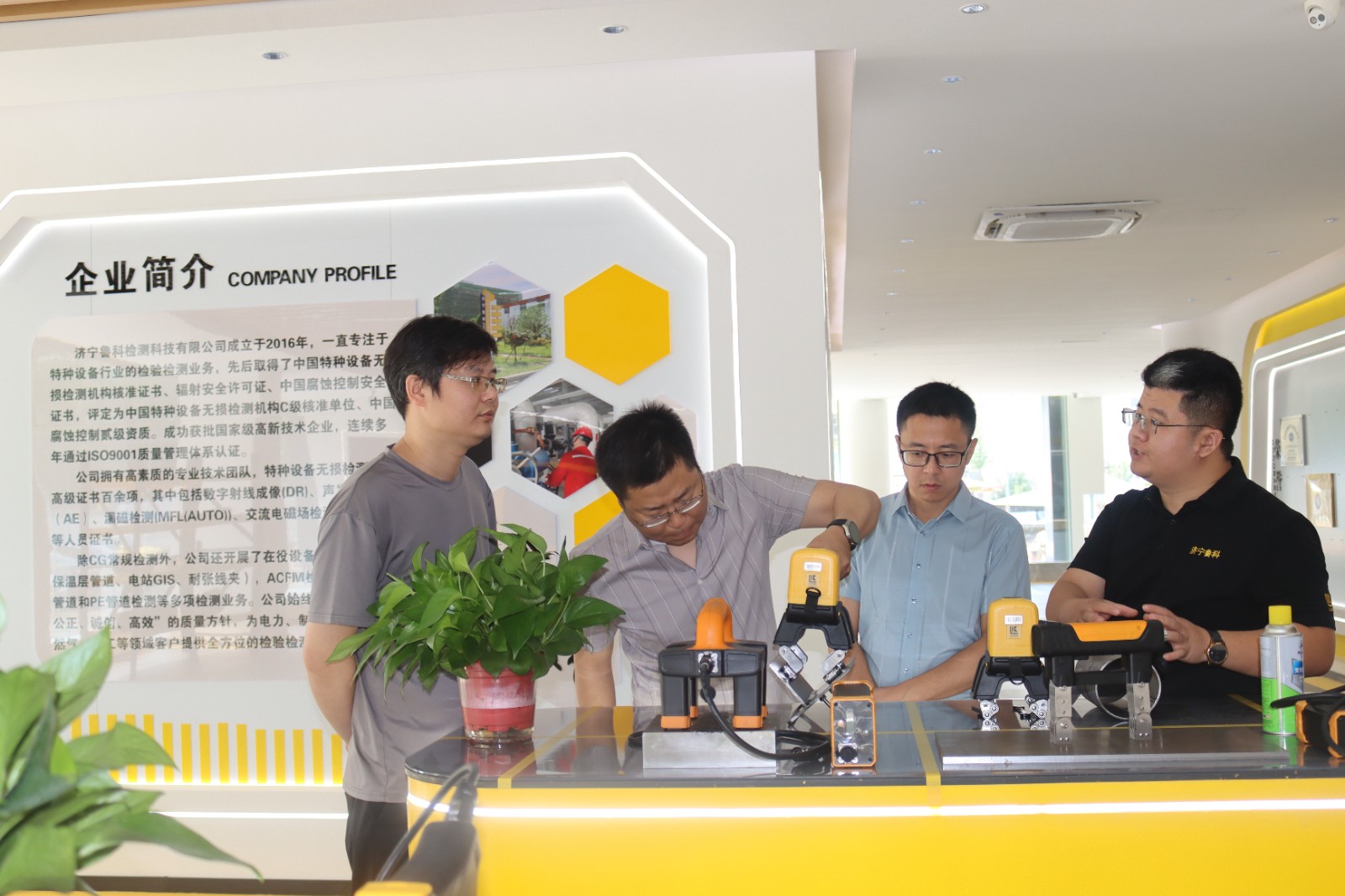 2024年7月25日中核24鋼結構分公司蒞臨我司考察指導,參觀我公司綜合辦公樓、研發生產中心、埋地管道實訓基地、工程公司辦公樓,詳細了解了我公司在便攜磁粉探傷儀、ACFM交流電磁場檢測儀、腐蝕電磁測厚機器人等產品的研發、生產過程,對我公司在產品研發方面的工作表示認可,并規劃了雙方要下一步交流合作的方向。